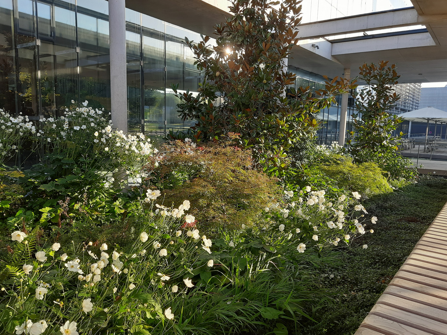 Im Winter 2023 durften wir den Eingangsbereich des Hugo-Boss-Campus in Metzingen gestalten. Knapp zwei Jahre später haben sich die Stauden und Gehölze prächtig entwickelt, zeigen leuchtende Herbstfärbung und hübschen Blüten- und Fruchtschmuck. Ein gelungenes Projekt, auf das wir mit Stolz zurückblicken.