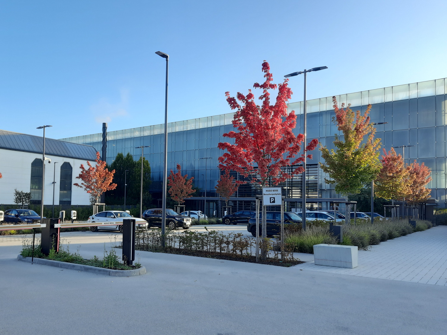 Im Winter 2023 durften wir den Eingangsbereich des Hugo-Boss-Campus in Metzingen gestalten. Knapp zwei Jahre später haben sich die Stauden und Gehölze prächtig entwickelt, zeigen leuchtende Herbstfärbung und hübschen Blüten- und Fruchtschmuck. Ein gelungenes Projekt, auf das wir mit Stolz zurückblicken.