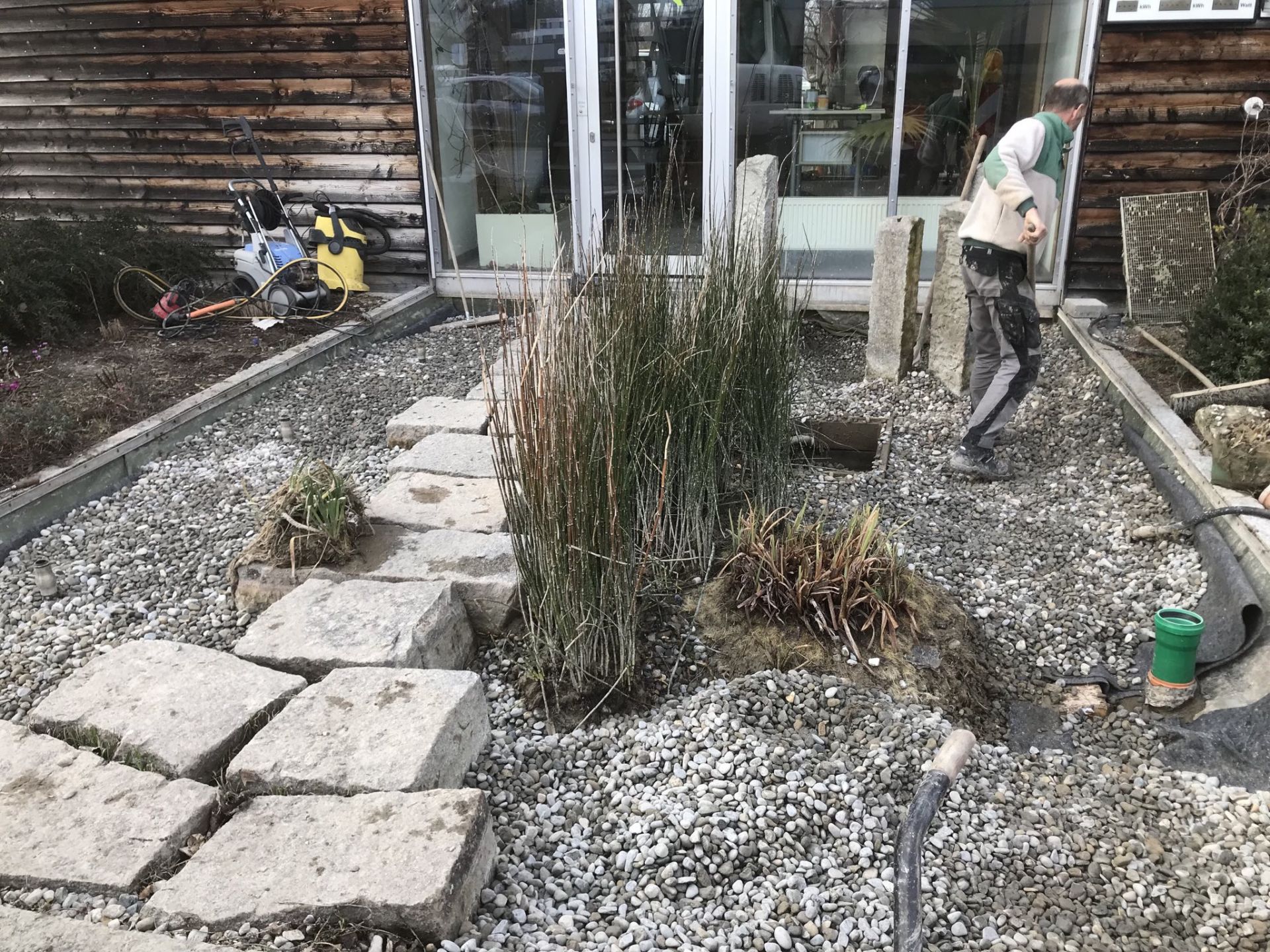 Der ProNatur-Betriebsteich vor dem Haupteingang unseres Firmengebäudes war in letzter Zeit stark veralgt und benötigte eine Sanierung. Deshalb haben unsere Mitarbeiter*innen die ruhige Jahreszeit genutzt und zunächst die vorhandenen Pflanzen und Tiere (u.a. ein Molch) vorübergehend umgesiedelt. Anschließend wurde der alte Kies per Bagger und mit Muskelkraft entfernt und durch neuen ersetzt. Eine Filteranlage wird künftig dafür sorgen, dass die Algen nicht wieder überhand nehmen. Jetzt sieht unser Teich wieder tiptop aus!